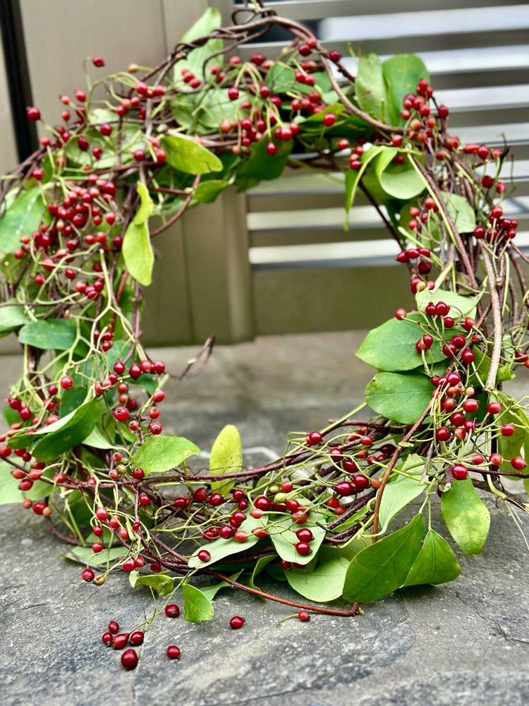 アケビのツルとノイバラの実のリース、素敵ですね💓