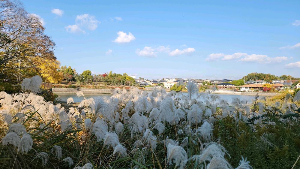 池の畔に白いススキ🌾のような穂がきれい❇️