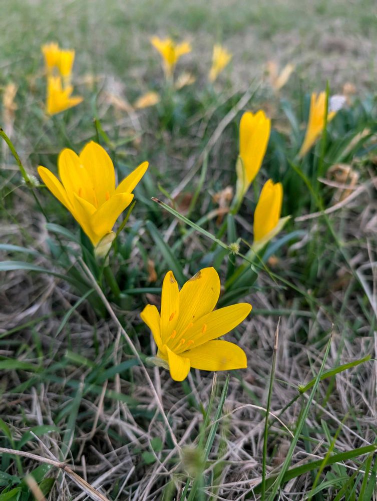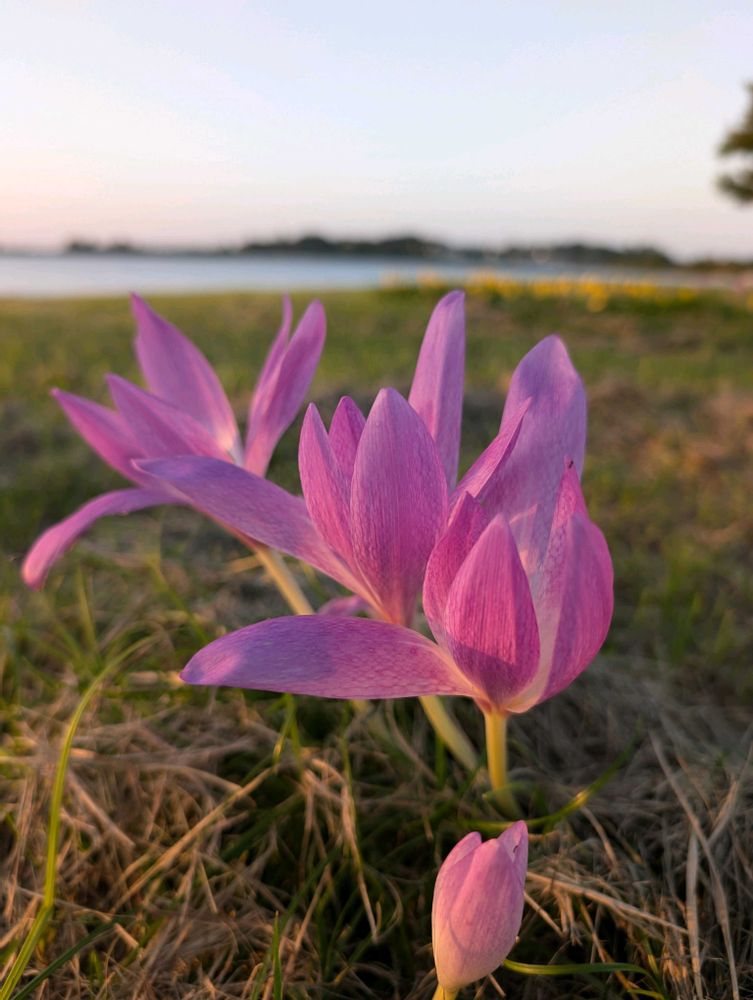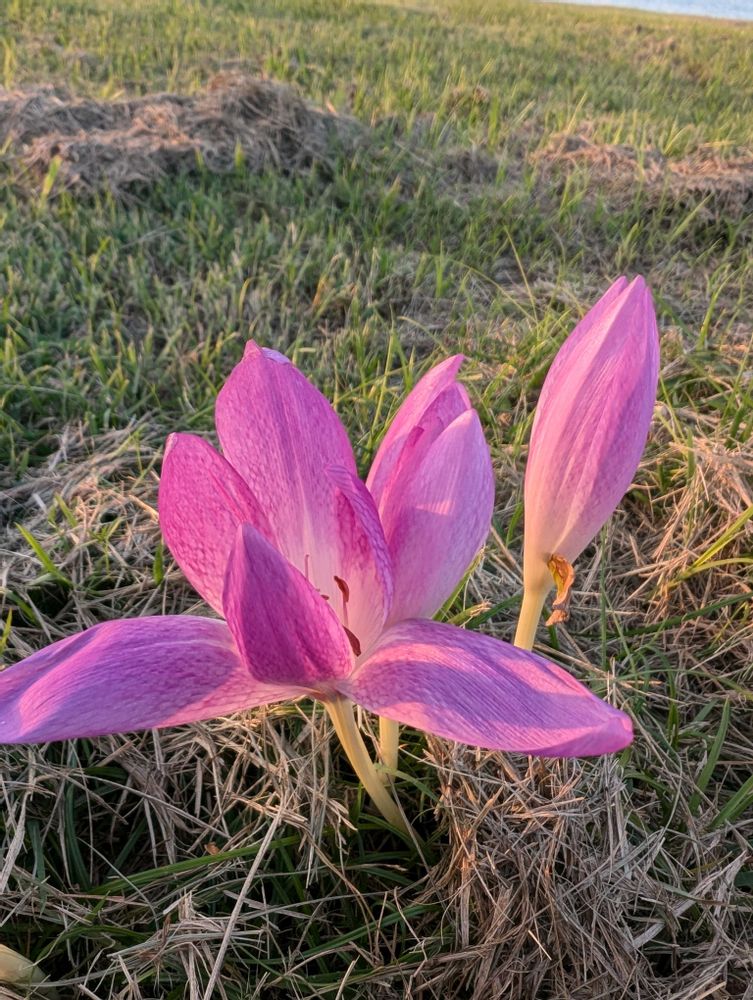 イヌサフランはコルチカムという猛毒の球根みたいですが毎年この芝生の中から突然咲きますよ🩷