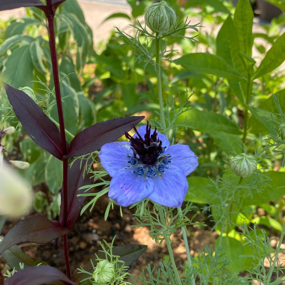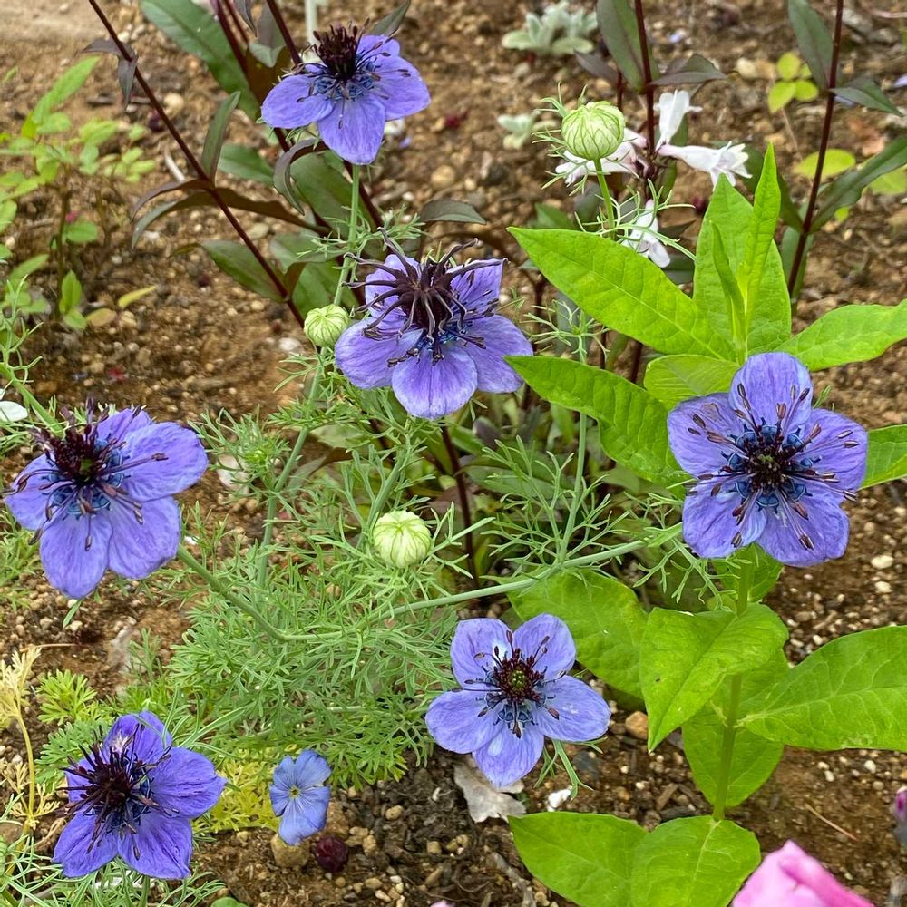 一株買ってきて植えたら、ポットの中に他の色の種も入っていたようで2枚目のような綺麗なブルーのニゲラも咲きました。