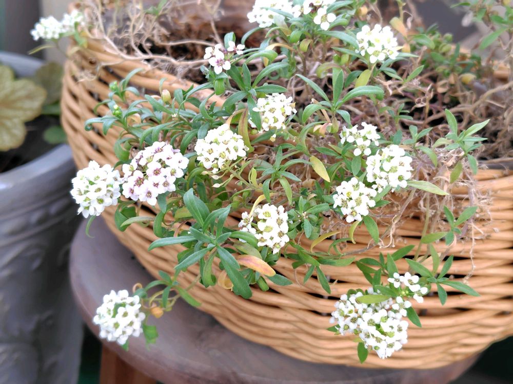 ②以前につくった寄せ植えのアリッサムが元気になってきました