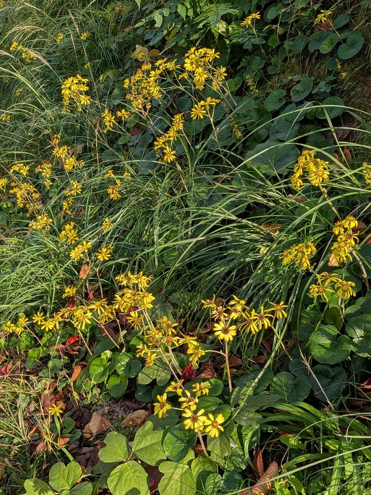 近くの土手で見つけたツワブキとアキノキリンソウ?💛