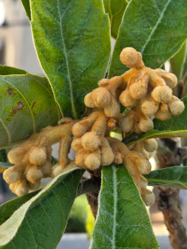 枇杷の苗を令和元年から、プランターで育ててますが、初めて蕾が付きました。お花咲くと良いな🤍💛🤍
