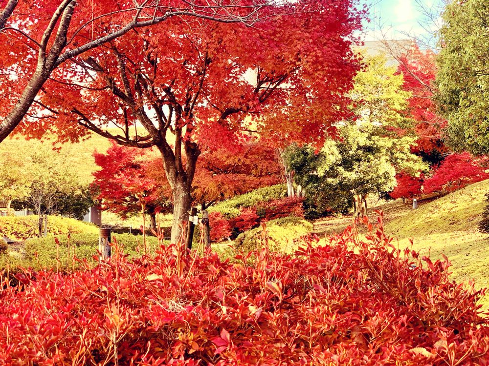会社のイロハ紅葉とドウダンツツジが綺麗に色付きました。