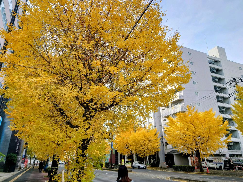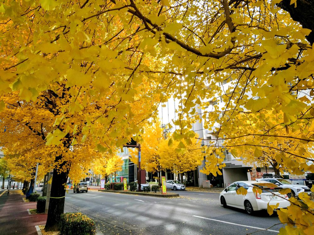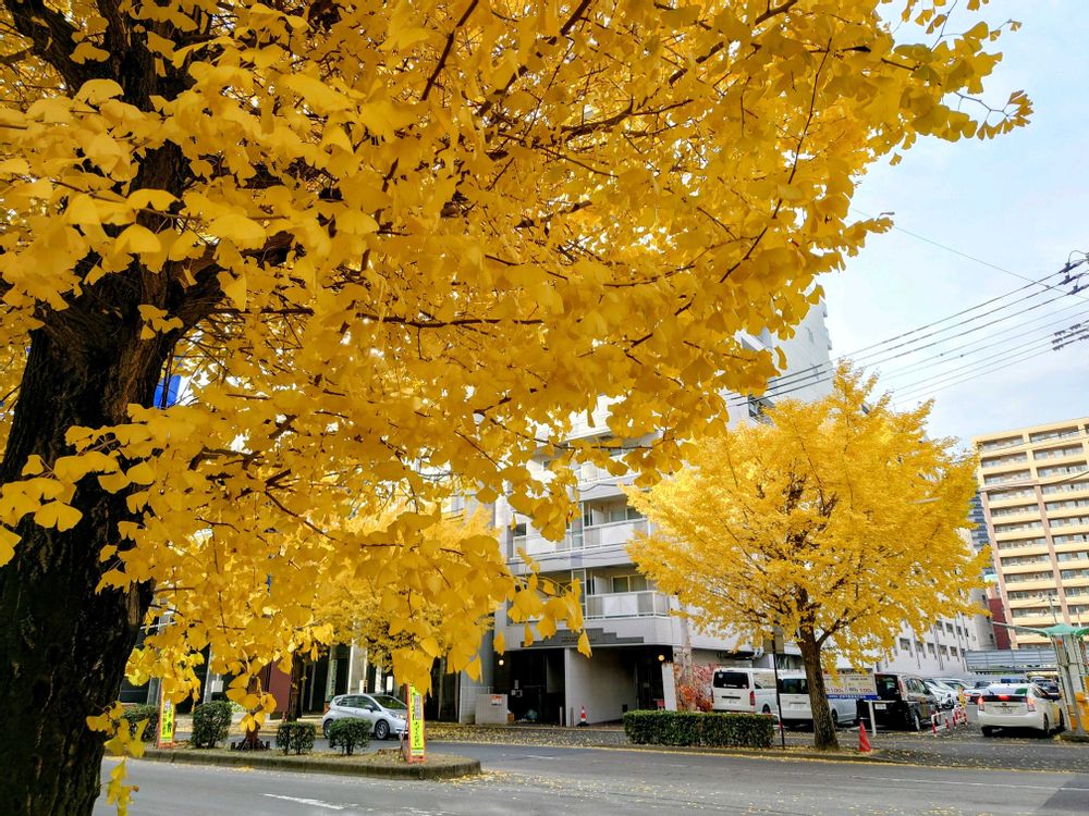 今日の午前、市内を散歩途中に見かけたイチョウ。