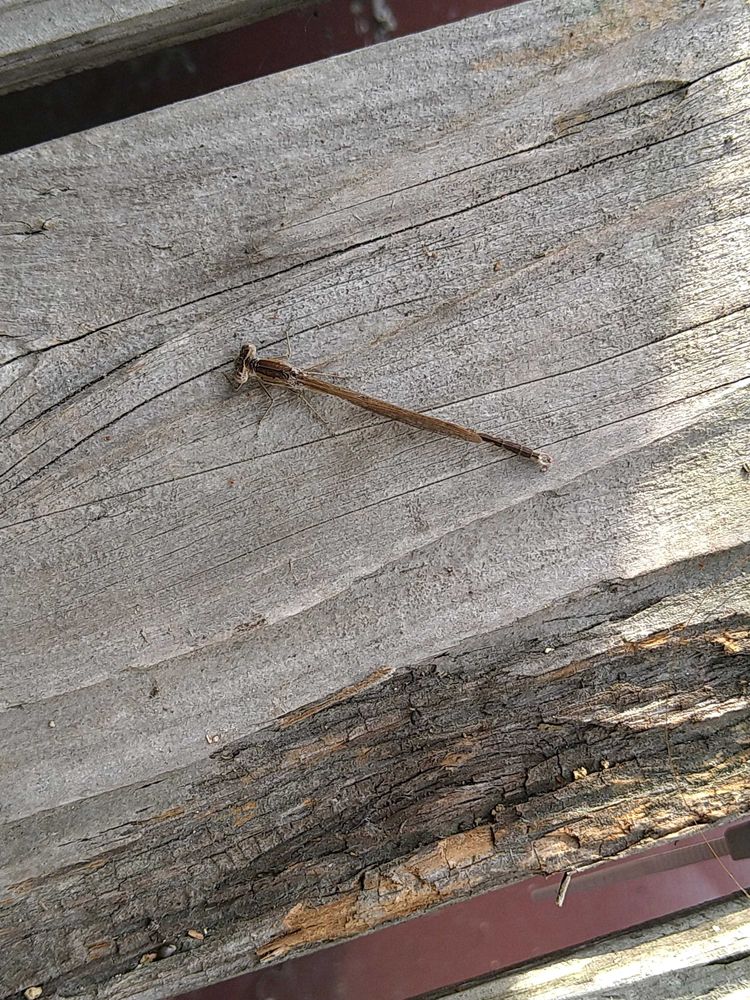 分葱のプランター持ち上げたらトンボが冬眠しようとしてました😃