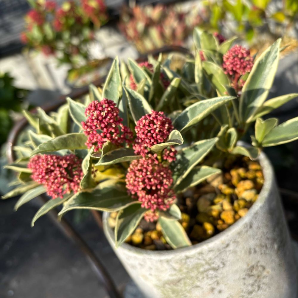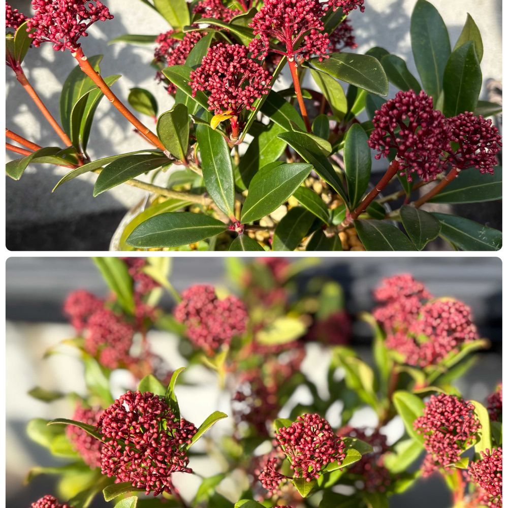 スキミア、マルローちゃんが葉っぱも蕾も1番綺麗よ〜😍
