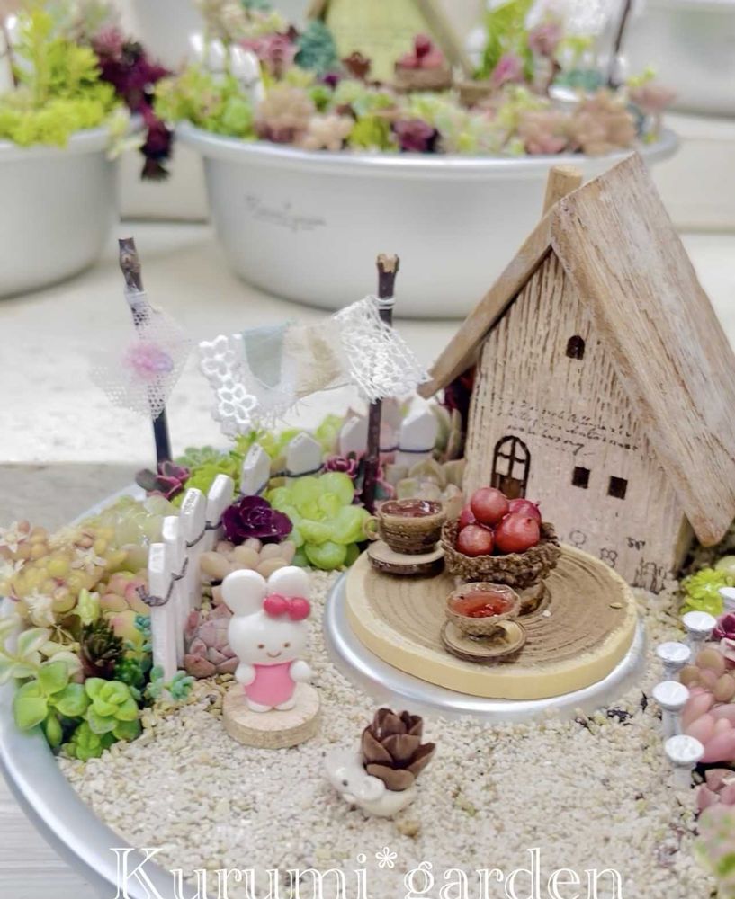小さなお庭の小さなティーパーティーでしょうか?かわいい箱庭を作るの、楽しいでしょうね🥰✨