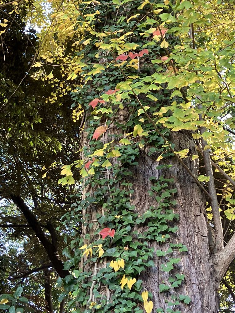 イチョウの黄葉を見る事が多いですが イチョウにキヅタ!の姿を見た事なるかな?と思って撮りました