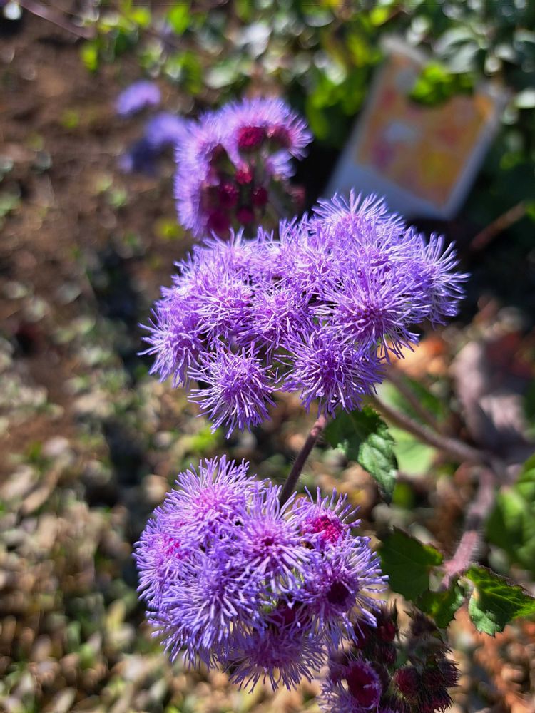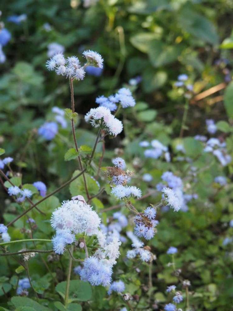 お散歩コースでアゲラタムがたくさん咲いていました。花があまりない中、小さな花がかわいかったです。