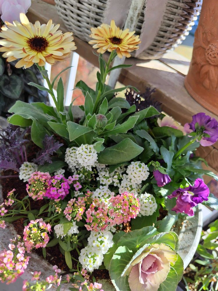 最近のアリッサムはカラー豊富でミックス具合もいろいろでビオラパンジーとほんとに相性いいよね✨