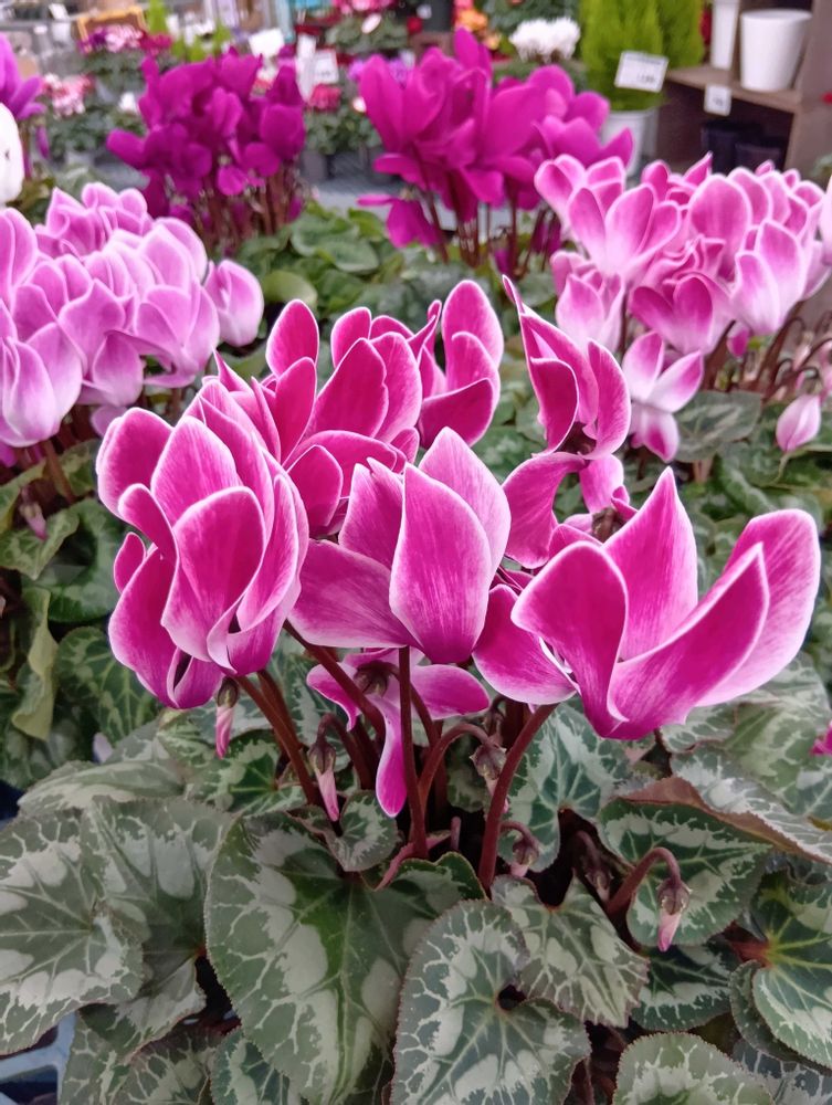 園芸店の店先のシクラメンいっぱい並んて華やかでした 寒くなってきたので玄関に避難したサンパラソル2輪咲いてくれました₍ᐢ..ᐢ₎~❤︎゛₍ᐢ..ᐢ₎~❤︎゛