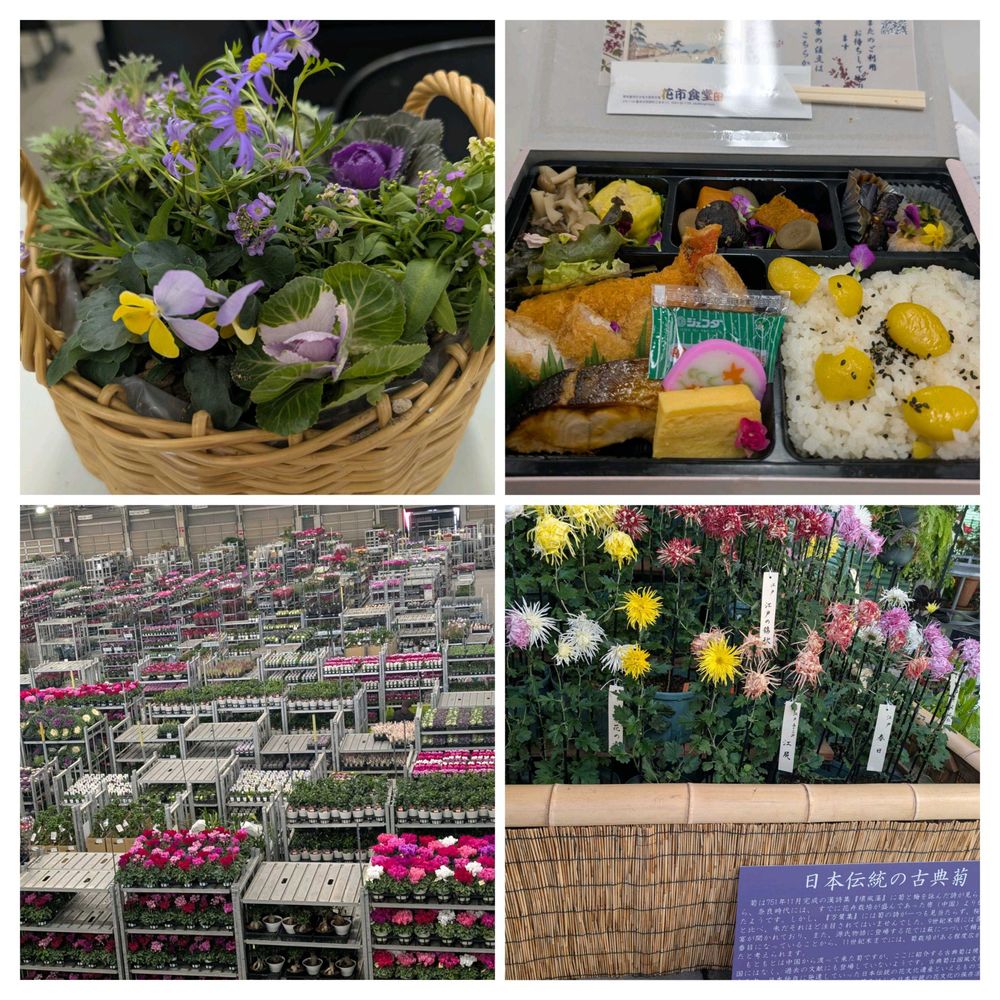 鉢花生産日本一の愛知県。豊明花き市場で、セリの様子と古典菊を見学し🎍寄せ植え💐エディブルフラワー(食べられる花)を使った「とよあけ花めし」を頂きましたψ(´ڡ`♡) オイシー♪
