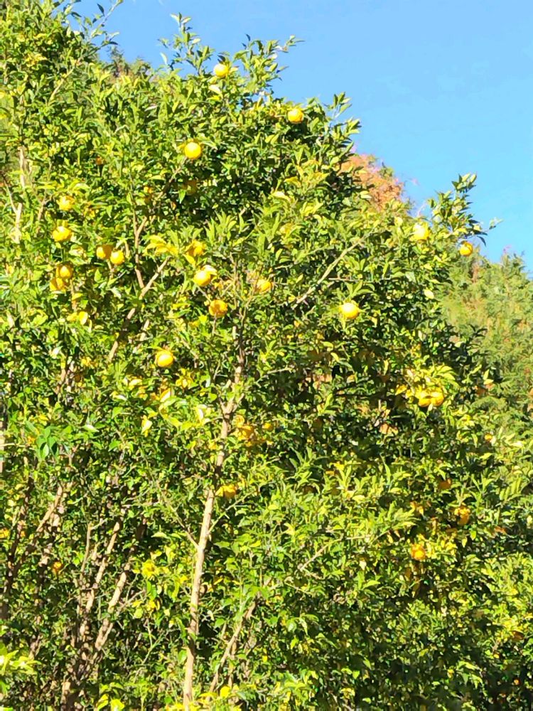 ①②③古民家本屋の庭先で柚子が沢山生っていました🍋