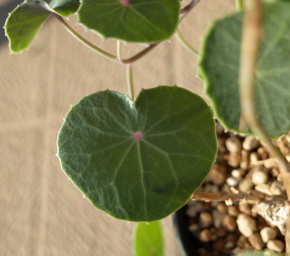 新しい葉は裏側の茎の色が反映されてピンク色になるんですね