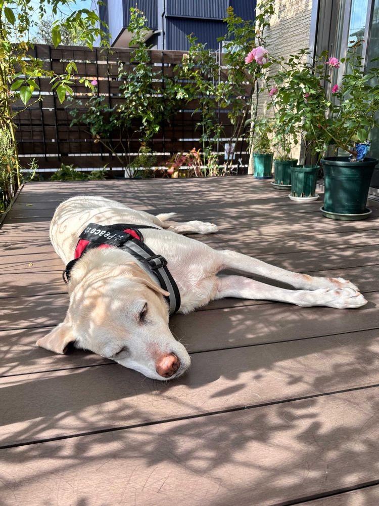 ③9.10月が嘘のように元気に過ごしています🐶心地よいデッキでのんびりしていました😆