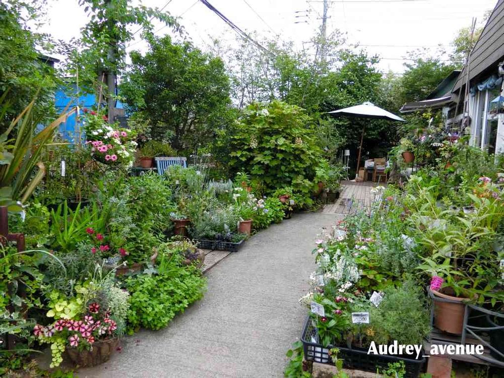 近くのガーデンショップアトリエkusukusuさん奥はコトリ花店
