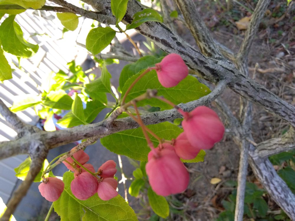 町内会館の花壇をボランティアしていてマユミがほんのりと紅をさし色づいています〜🥰今はシレネのアプリコットの種まきが芽🌱🌱春先にはピンク色の花々が咲くのを愉しみ手入れ頑張ってます💪🤗🩷🩷🩷