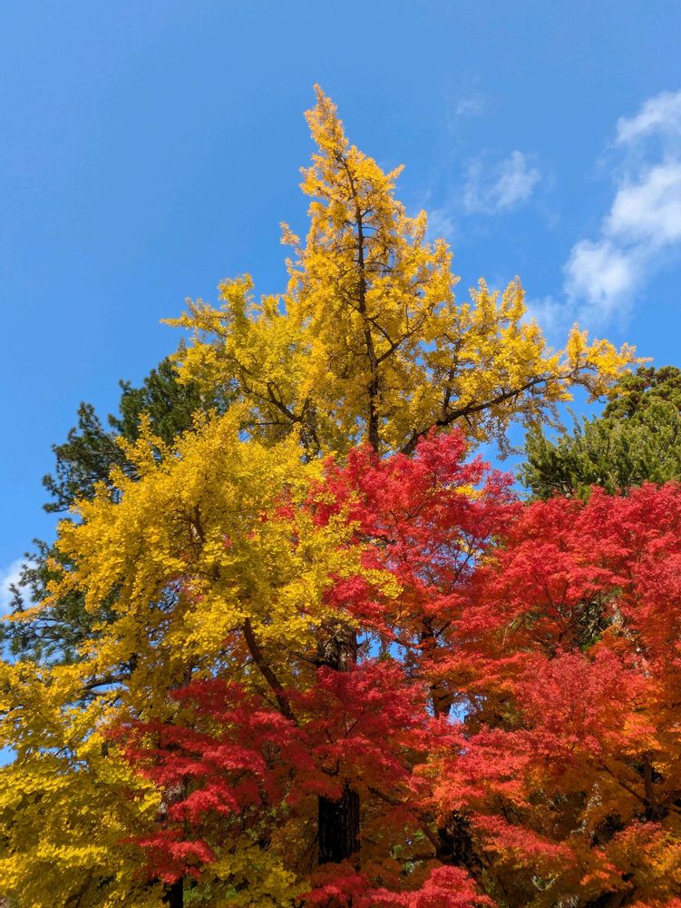 〆は、イチョウとモミジと青空と。(≧∇≦)/