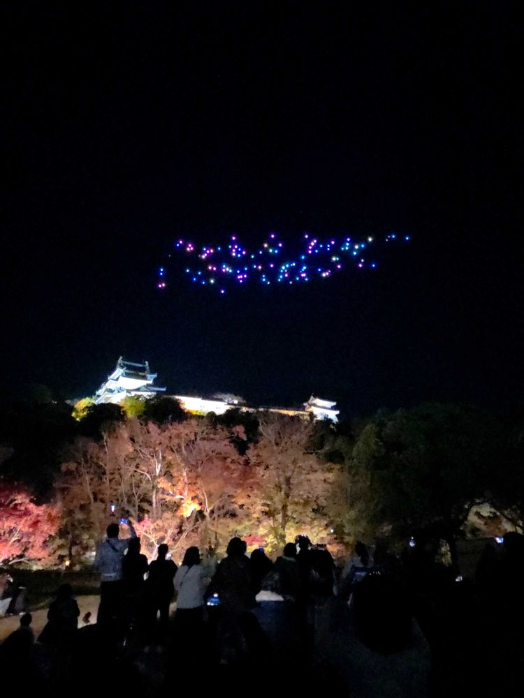 お隣に座られてお城を自撮り棒で撮られといた方がドローン会社の方でびっくり