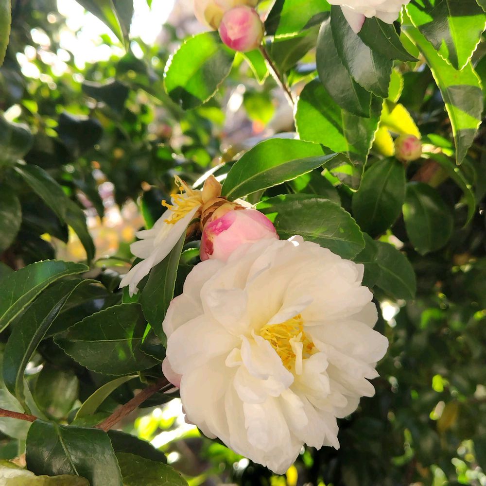サザンカ🤍🩷ほんの少しピンクも可愛い(ෆ❛ั◡❛ัෆ)