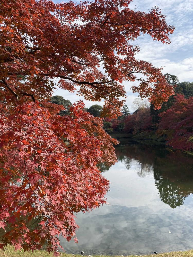 昨日(24日)京都仙洞御所に行って来ました。今紅葉🍁が見頃を迎えていました。1日50枚限りの当日整理券を求めて朝一番(7時30分頃)並びました。8時過ぎには満員御礼となりました。当日受付人数、参観要領は京都仙洞御所のホームページに詳しく載っています。御所の方が案内をしてくれるのでとっても楽しい60分の参観でした。