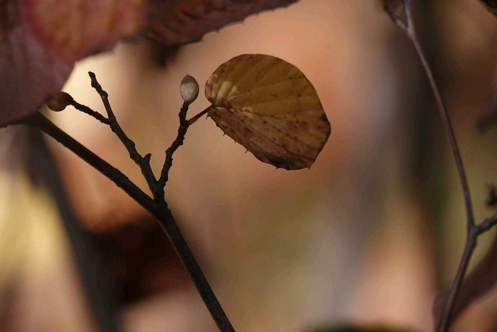 冬の終わりから春早い時期にクリーム色の総状花序が枝からぶら下がるように咲きます。花だけが先に咲きますから、今出ているのは花芽でしょうか
