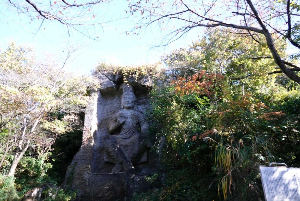 昭和35年に横須賀在住の彫刻家藤島茂氏が一年かけて制作、岩に生命を刻まれたそうです。