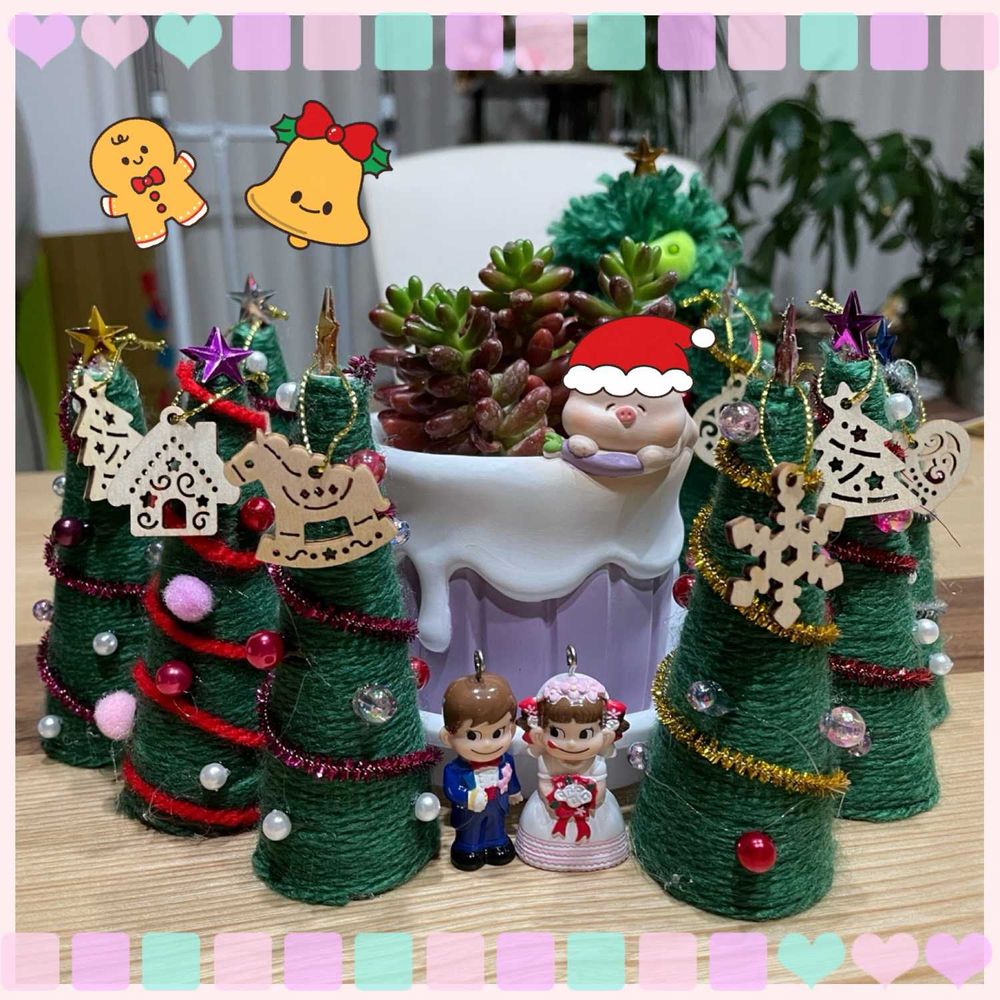 トイレットペーパーの芯ツリー🎄毛糸グルグル🧶段ボール紙ツリー🎄毛糸ペタペタ🧶増産中😆♬