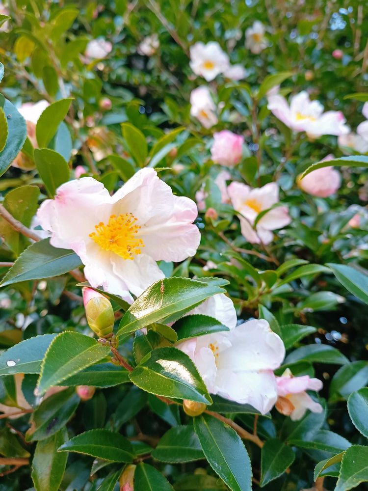 2⃣ 淡いピンクと白のサザンカ。 11月22日 山の公園