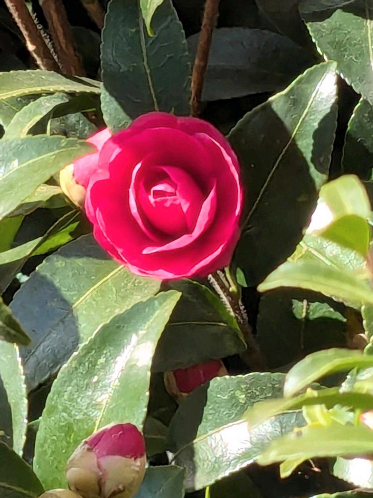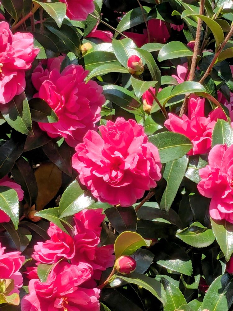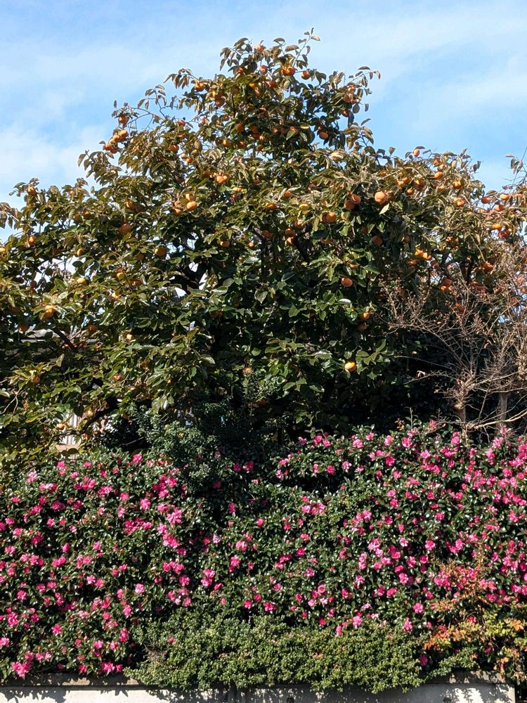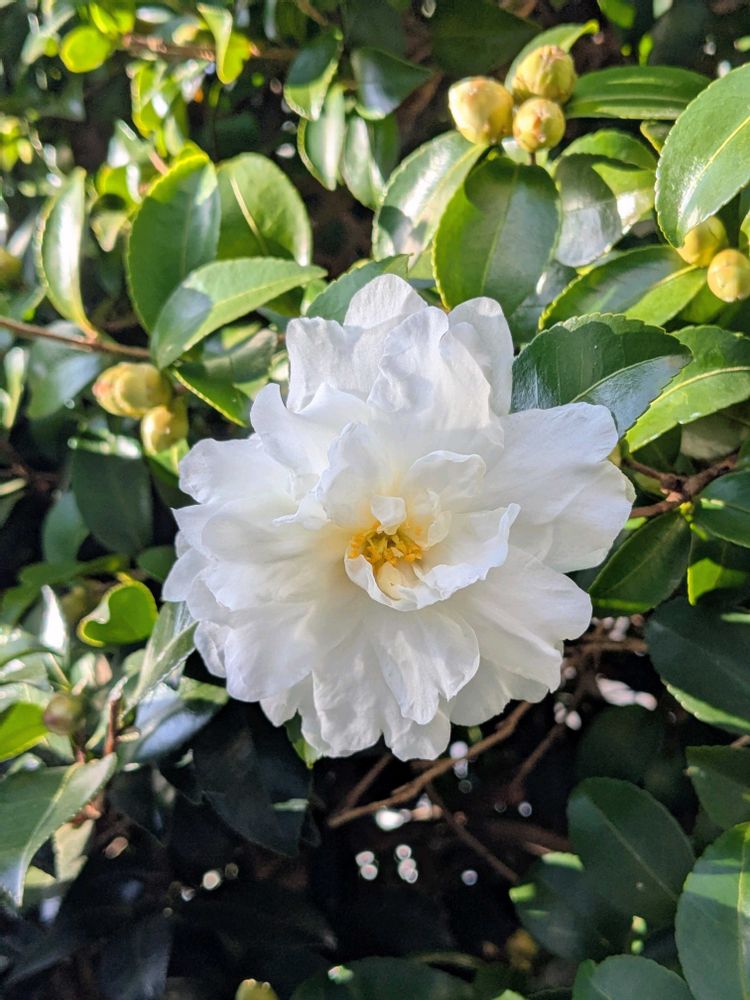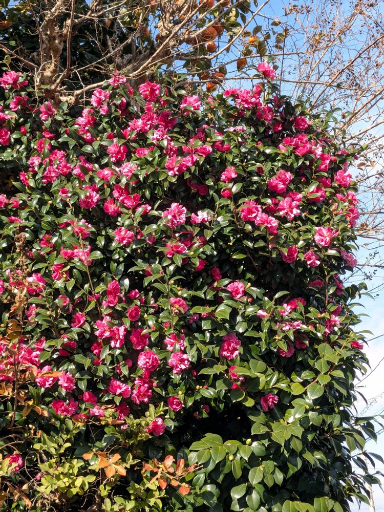 買い物先のスーパー裏に咲く山茶花(垣根)が毎シーズン鑑賞する事が通例になってます。