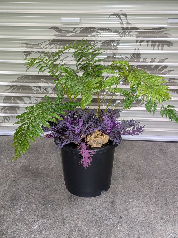 紫の切れ葉とシダを合わせて『魔界植物』っぽい感じに🤭