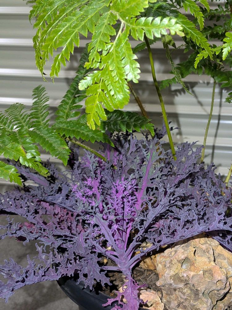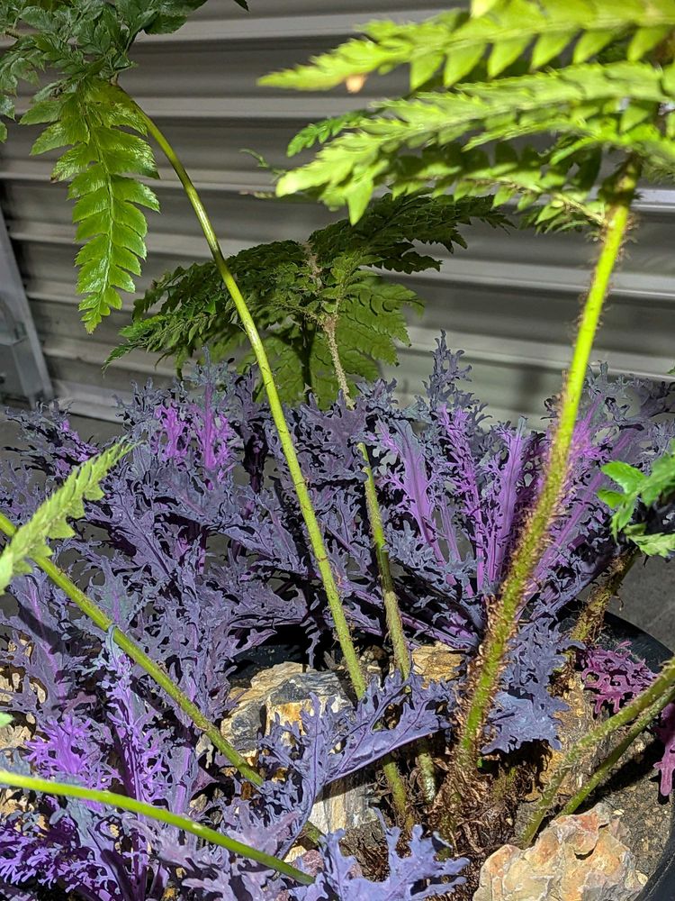 切れ葉の葉ボタン見て『魔界っぽい』って思ってホームセンターウロウロしてたらシダかなと🤭