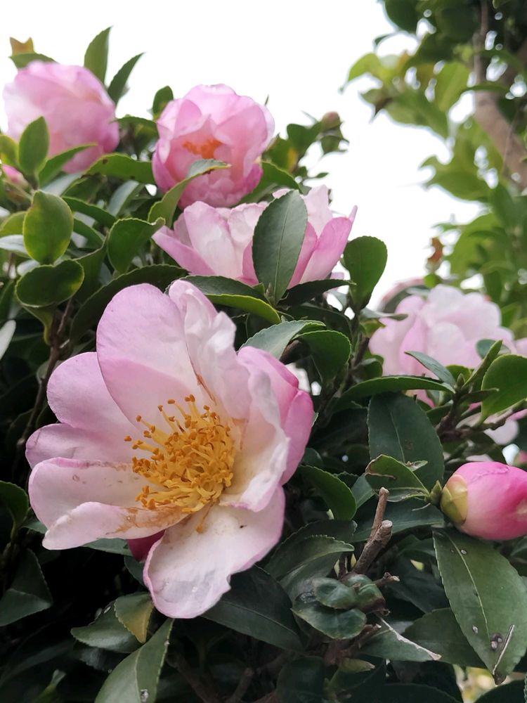 ピンクが混じって可愛いサザンカが咲きましたね🩷🤍🩷🤍