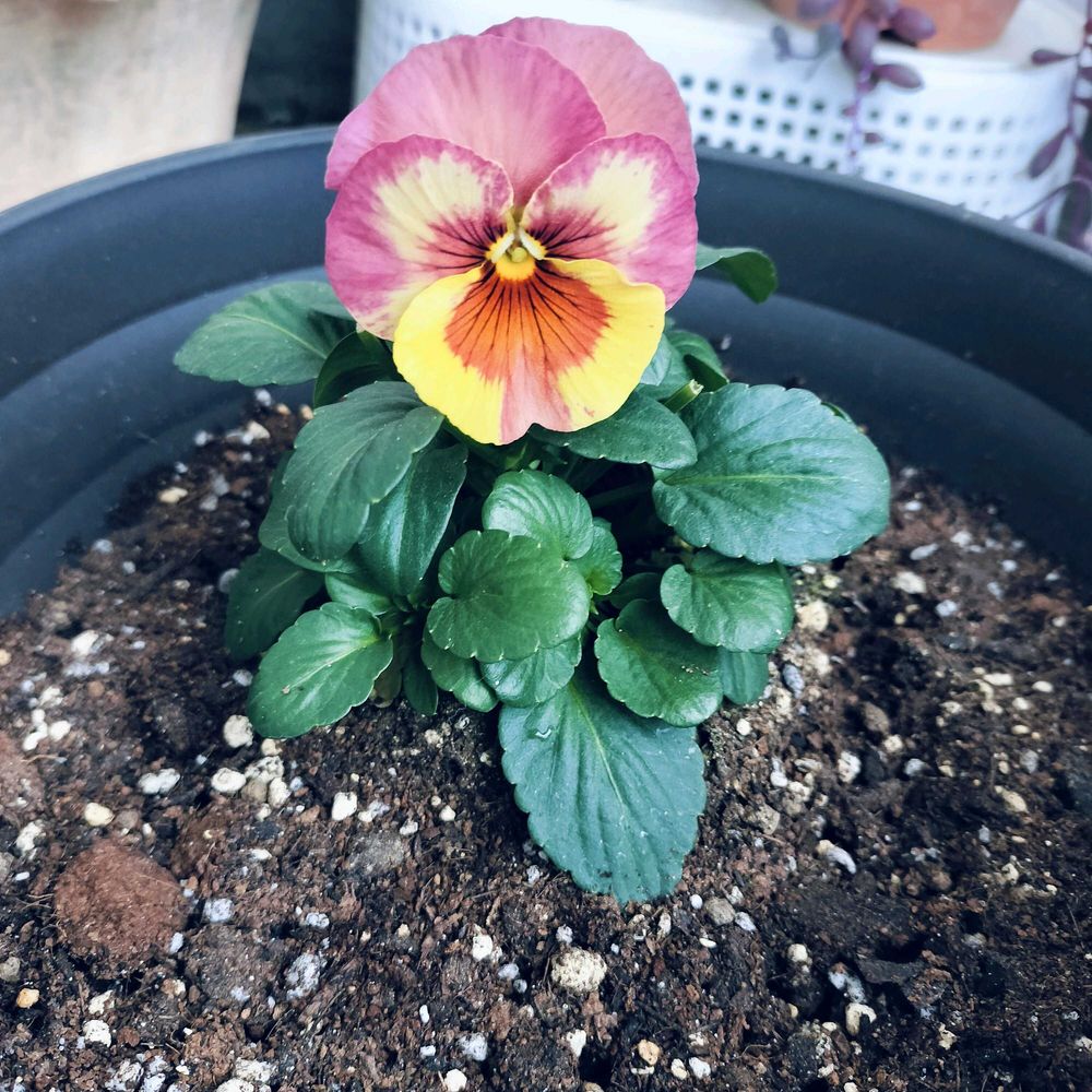 ①②は最初に植えた時のパンジーで1つの苗に2つの花が咲いていました。