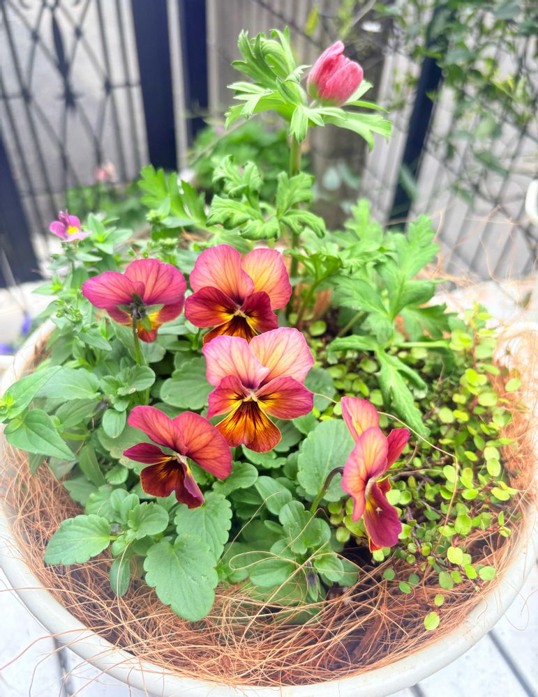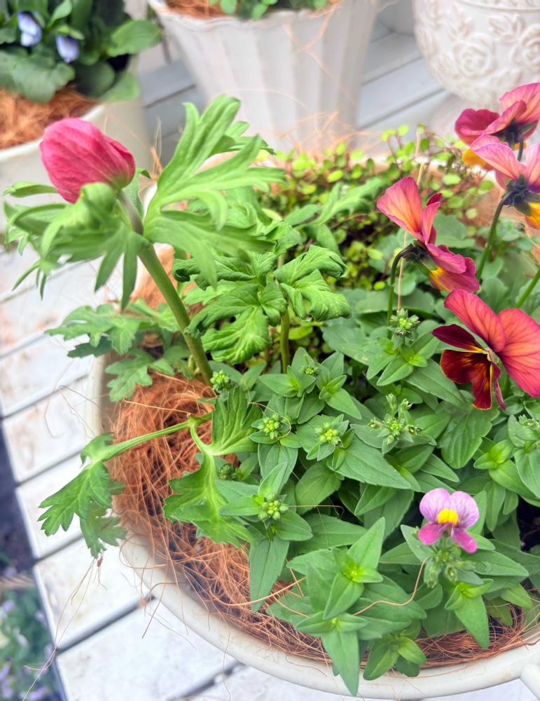 アネモネ・ビオラ・ネメシア…可愛い寄せ植えね🩷咲き揃う日が楽しみね😊