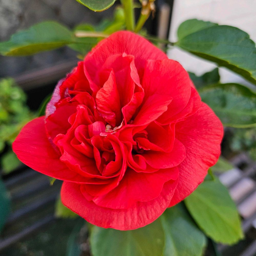 素晴らしい八重咲きのハイビスカスですね✨️色も鮮やか、目の覚めるような素敵な色ですね💕🥰