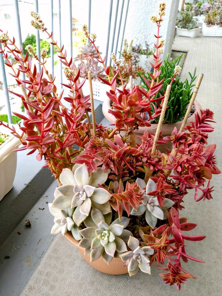 急に寒くなって赤みが増し、赤鬼城の花❀も咲いて、華やかさが出て良い感じ😆💕