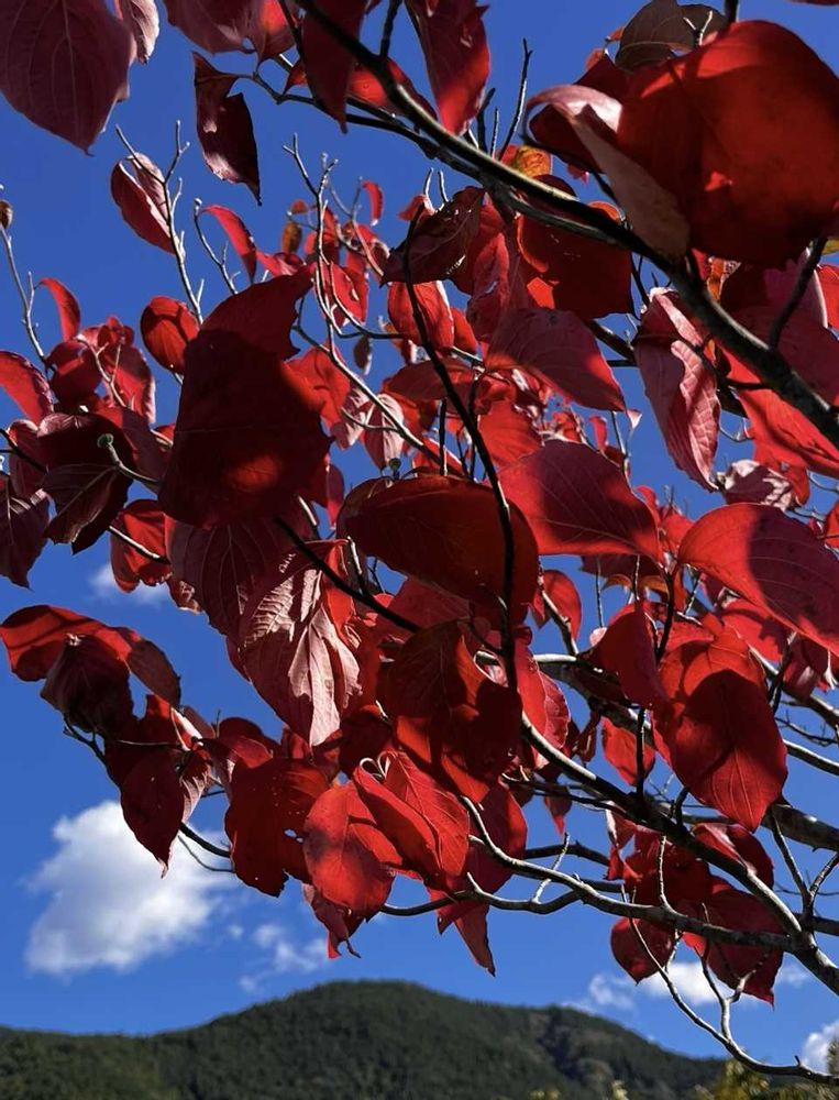 青空に映える真っ赤な紅葉🍁❤️🍁❤️
