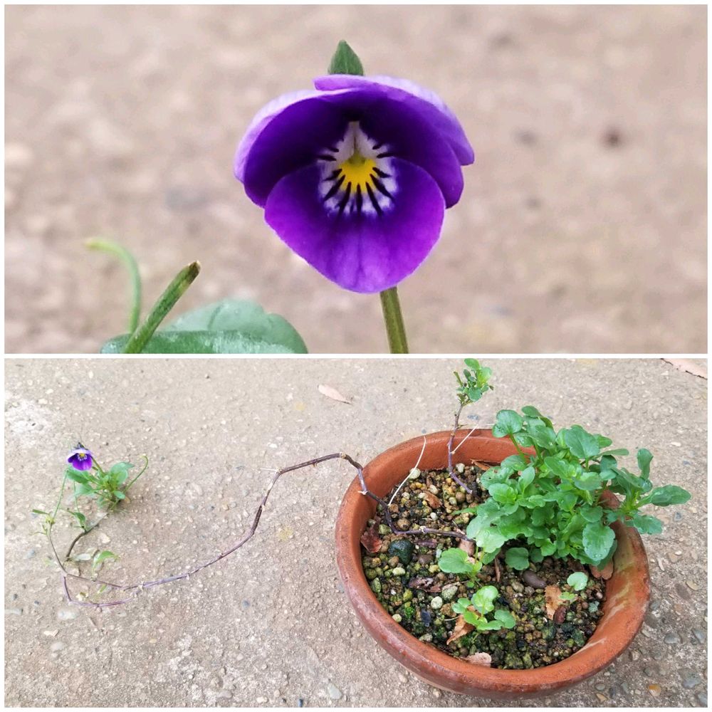 ①木陰で夏越したビオラの花が咲いた、最近葉っぱがモリモリ