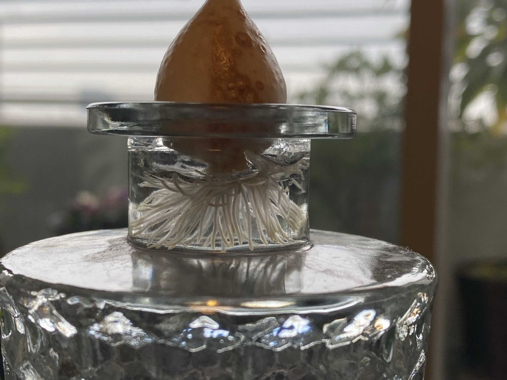 私は昨日、テータテート🌷ちゃんの皮をむいで、スタートしました。皮が硬くて、球根に傷がついたり、むけない物もありました。