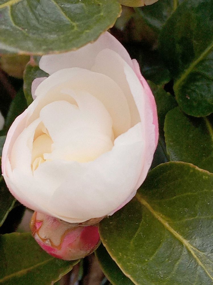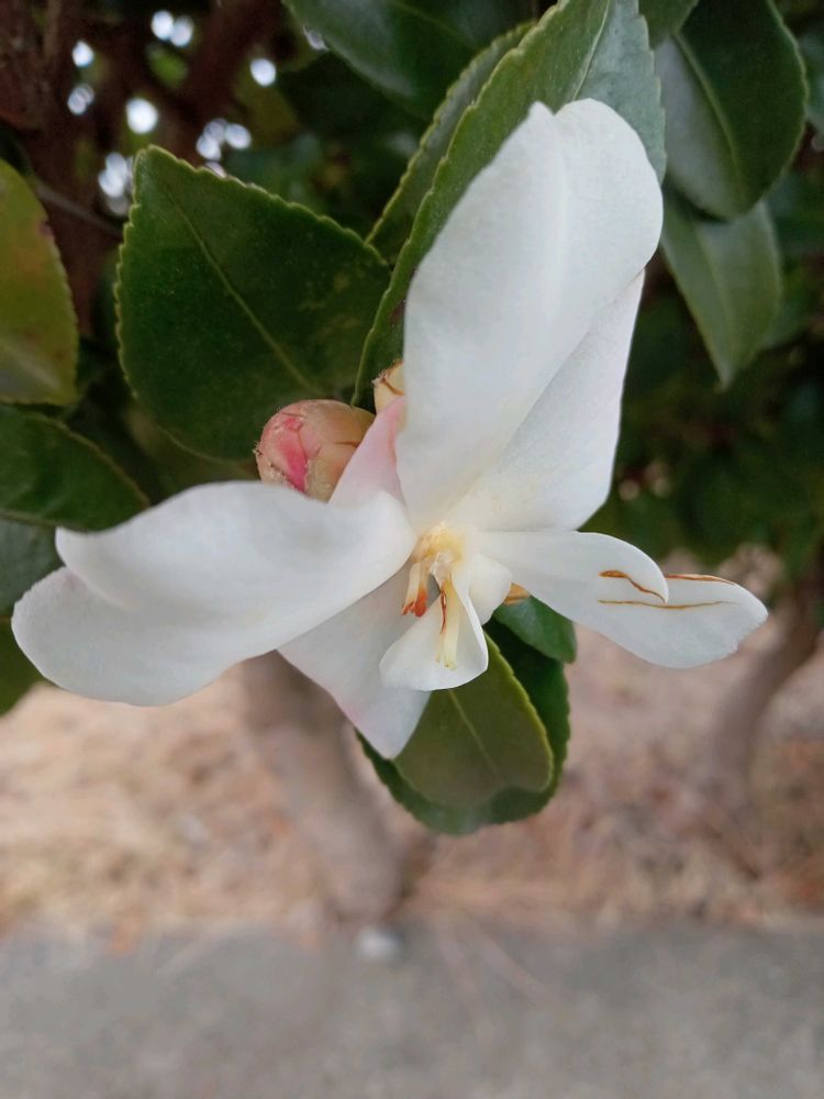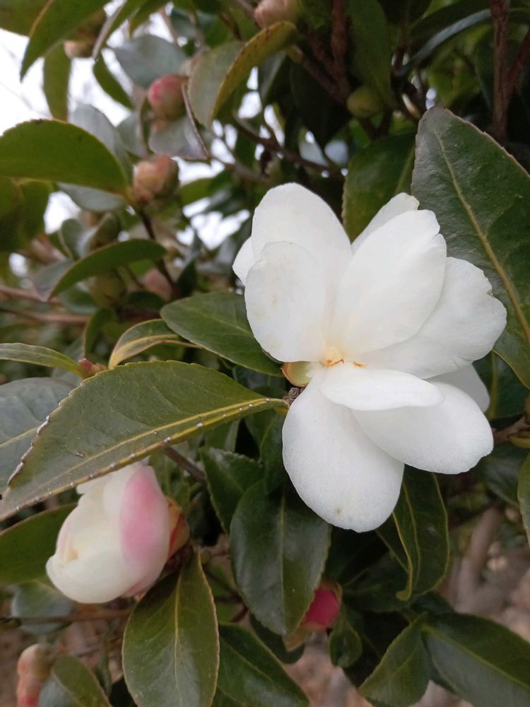 雪のように真っ白なサザンカですネ💖
