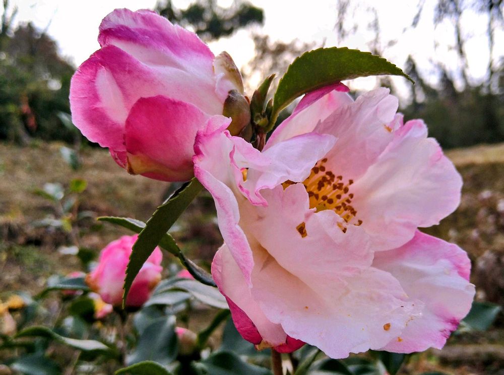 ほんのりピンクが可愛いサザンカ🩷