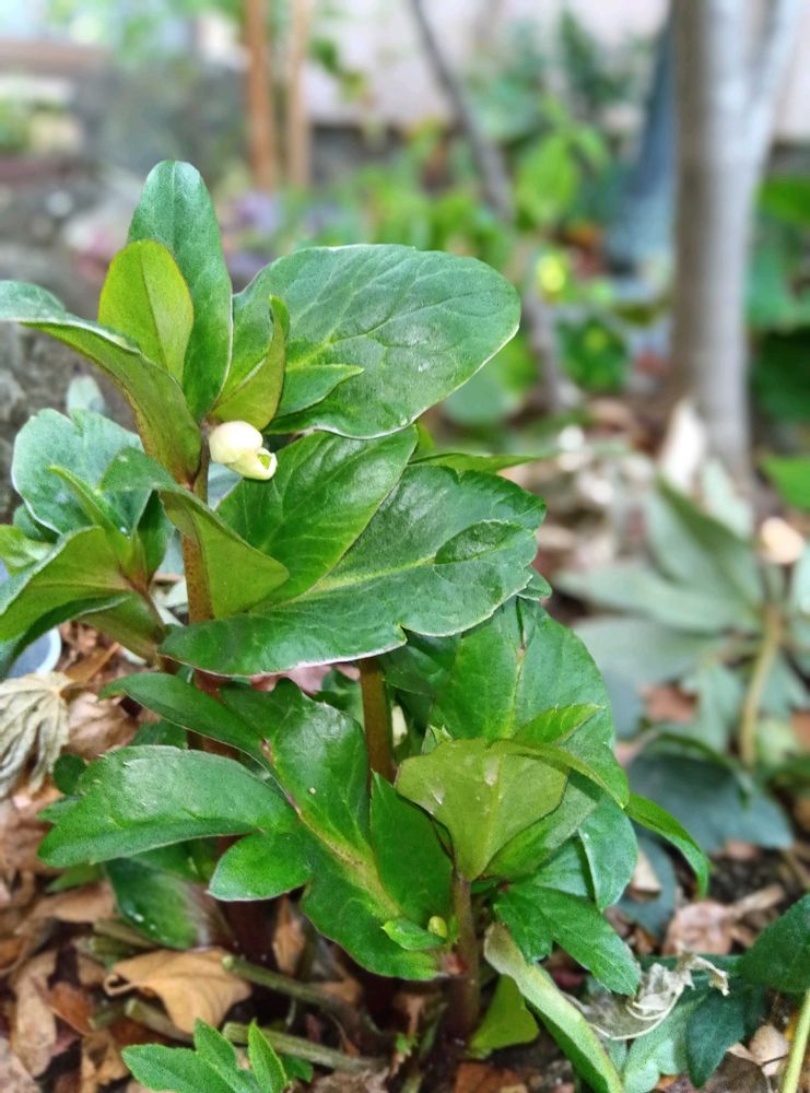 初秋に地植したクリスマスローズ ウィンターベルは蕾を付け