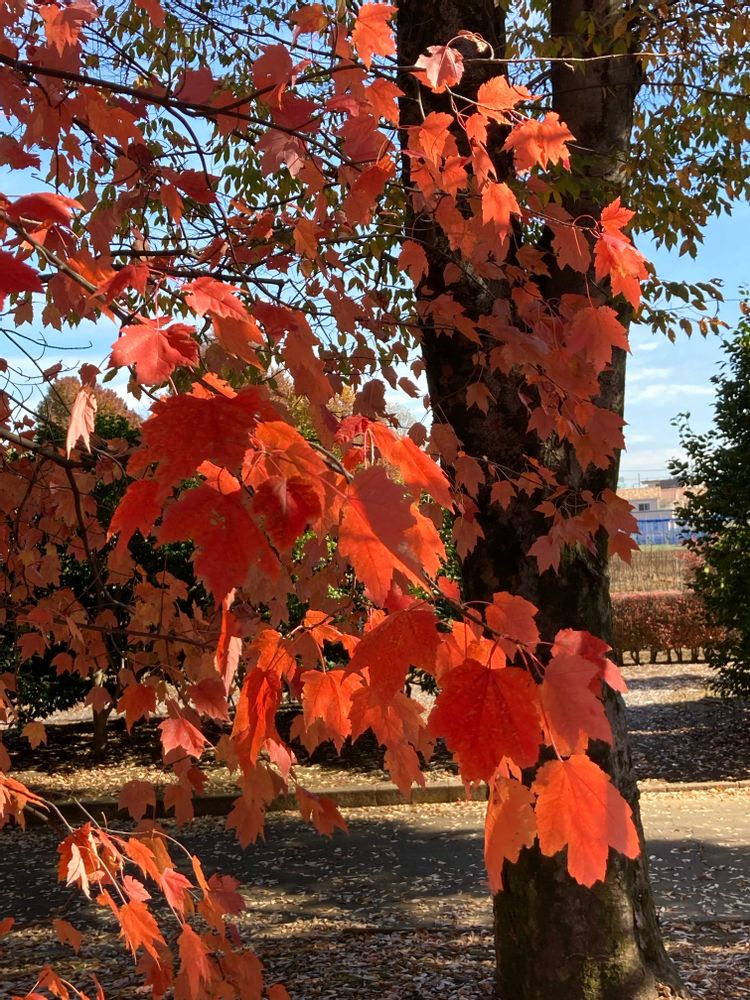 アメリカハナノキ、真っ赤に紅葉するのね🍁😅