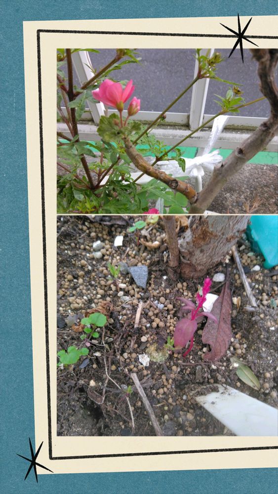 5枚目は琉球朝顔の鉢の中でゼラニウムが咲き出した