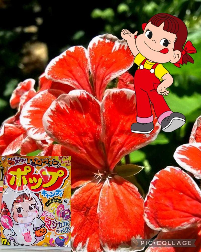 赤いゼラニウムとぺこちゃんキャンディ🍭