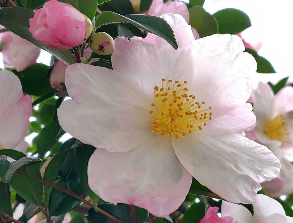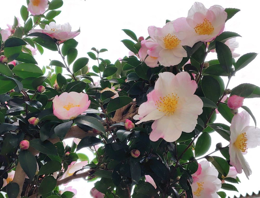 庭のサザンカ、窓から見えてとても綺麗です🤍🩷💛