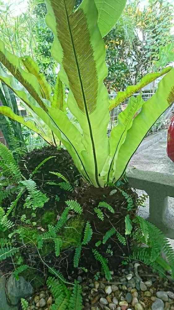 広い庭,日曜日の朝,窓辺から見た庭のオオタニワタリの投稿画像