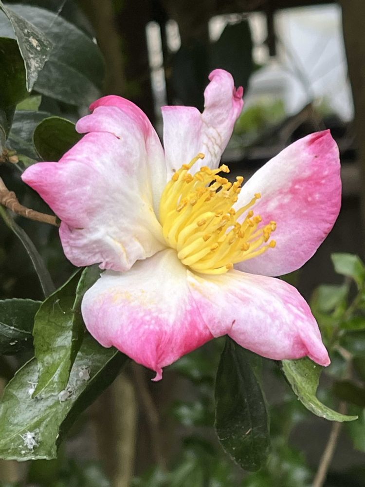 ピンクの縁取りの可愛いサザンカが咲きました💕
